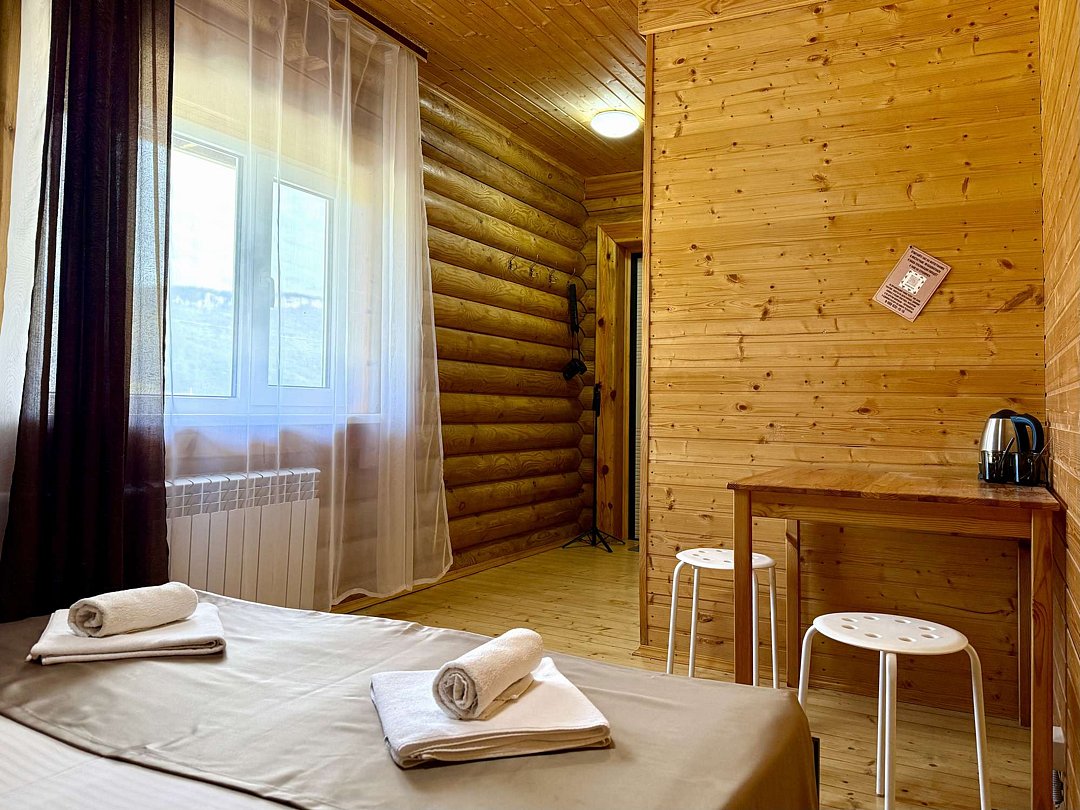Уютный однокомнатный номер на двоих, категории стандарт (возможно дополнительное место — евро-раскладушка), оборудованный всем необходимым для комфортного проживания. Из окна открывается потрясающий вид на горы.