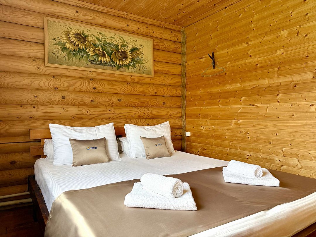 В распоряжении гостей ванная комната (душ, туалет, раковина), двуспальная кровать и двуспальный диван, либо двуспальная кровать и четыре односпальные кровати, необходимые косметические и гигиенические средства (шампунь, мыло, гель), необходимый комплект домашнего текстиля, телевизор, холодильник, фен (на ресепшене).