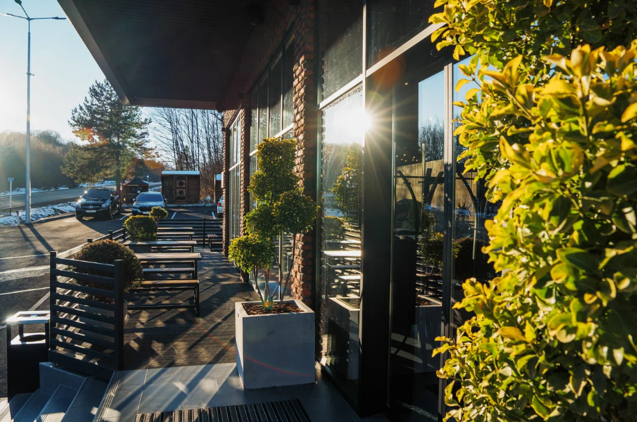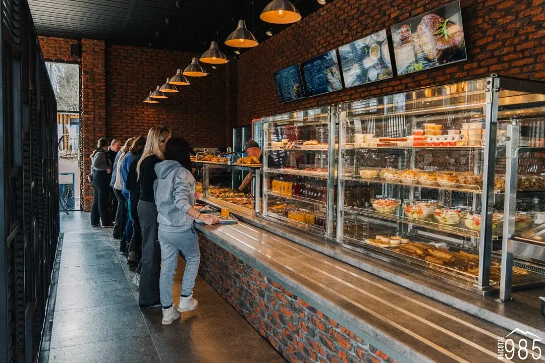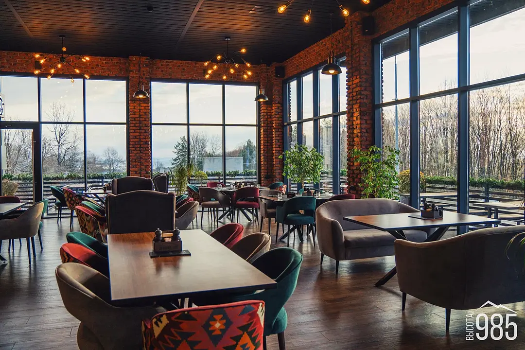 Здание ресторана имеет панорамные окна, из которых открывается потрясающий вид на горы и долину. В столовой предлагают блюда из местных продуктов, такие как шашлык из горного барашка, форель, запеченная с травами и многое другое.