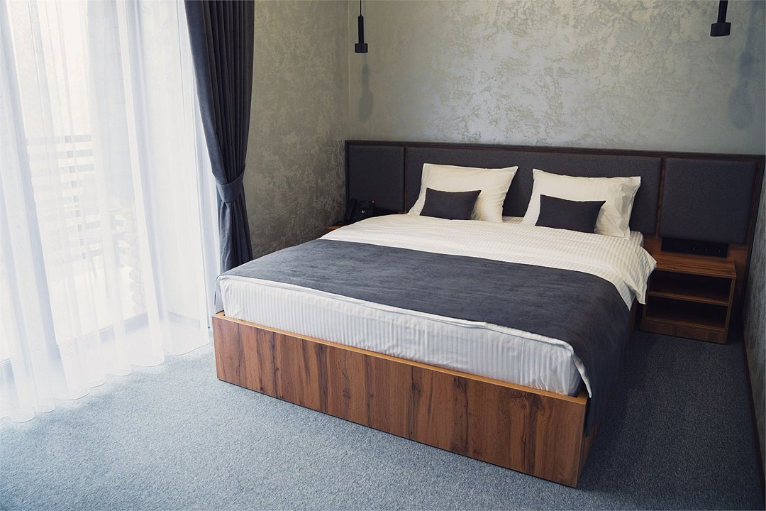 Одна большая двуспальная кровать, уютное кресло-кровать и рабочий стол. Удобства в номере: Телевизор с плоским экраном. Принадлежности для приготовления чая и кофе, сейф, мини-барУслуги и удобства