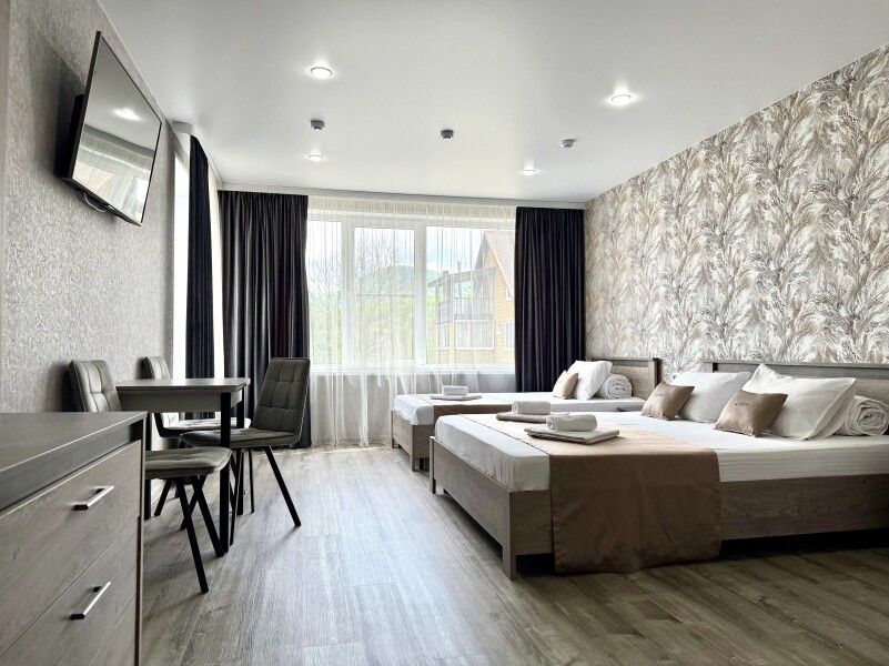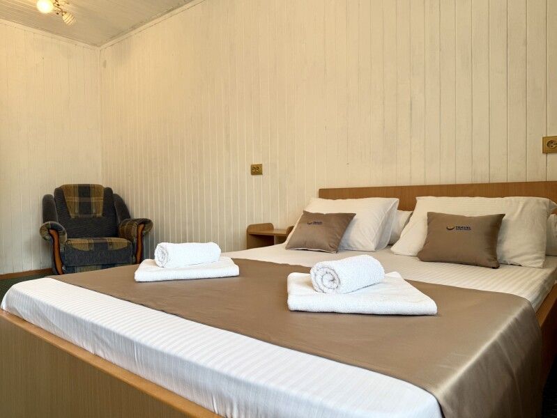 Здесь создано пространство, где каждый найдет комфорт по душе. Выбирайте из уютных экономных вариантов или просторных люксов — все номера продуманы до мелочей, чтобы ваше пребывание было по-настоящему приятным.