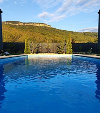 На территории кемпинга два одинаковых барнхауса с панорамными террасами, каждый из которых рассчитан на 6 человек, также есть сезонный бассейн с подогревом, джакузи на дровах, печь-мангал и профессиональные газовые грили.