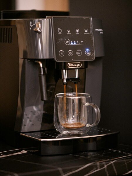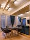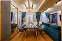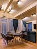 Кухня оснащена индукционной плитой, вытяжкой, холодильником, электрическим чайником, микроволновкой, кофемашиной «Delonghi», а также наборами посуды для приготовления пищи (три кастрюли, две сковороды) и сервирвания стола (тарелки глубокие, столовые, десертные, салатные)