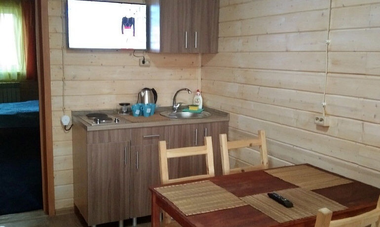 Водопровод, туалет, душ, печь СВЧ, чайник, холодильник, телевидение, отопление. Одна