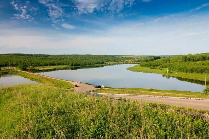 - Живописный вид на озеро.