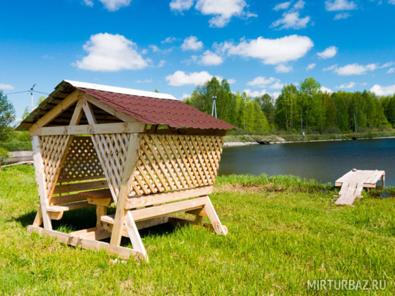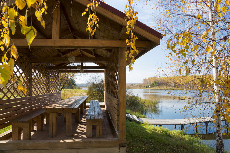Уютные беседки на берегу озера на 6 и 20 человек.