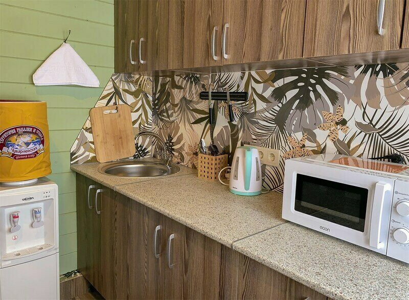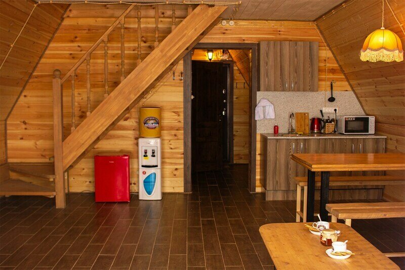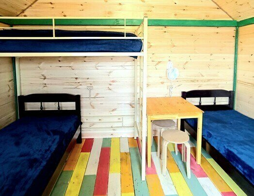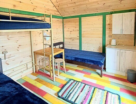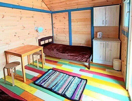 Для любителей походной романтики и отдыха, но ценителей комфорта на территории кемпинга подготовлены 7 маленьких уютных домиков. Рассчитанные на 2-3 человека. Домики оснащены электричеством, мини-кухней, удобными спальным местами