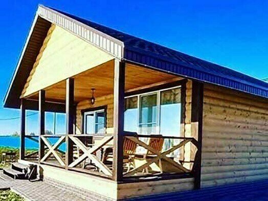 Уютный семейный дом, с двумя просторными комнатами, отдельной кухней и большой террасой. Из панорамных окон открывается прекрасный вид на озеро. Рядом с домом находятся оборудованная зона отдыха с мангалом и мосток для рыбалки.