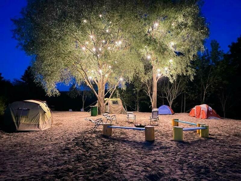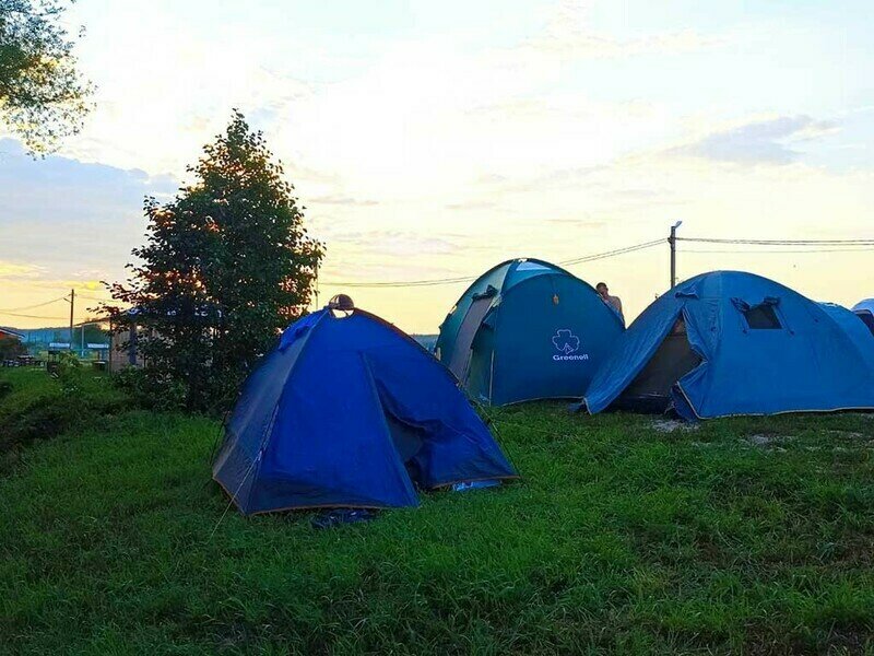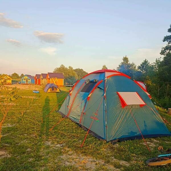 Для любителей походной романтики и отдыха, но ценителей комфорта на территории кемпинга подготовлены 7 маленьких уютных домиков. Рассчитанные на 2-3 человека. Домики оснащены электричеством, мини-кухней, удобными спальным местами.