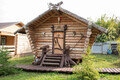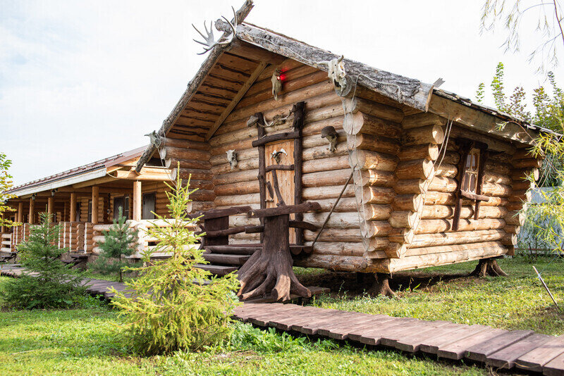 Домик Бабы-Яги выполнен в старинных русских традициях и представляет собой необычную игровую зону для малышей и подростков.