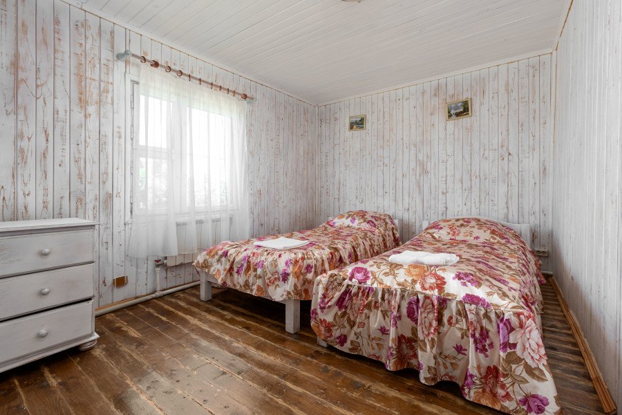 На благоустроенной территории площадью 6,5 гектаров вас ждут комфортные номера в кирпичных коттеджах, гостинице или уютных деревянных домиках. Каждый номер оборудован удобными кроватями, тумбочками, шкафами и оснащен собственной ванной комнатой с душем или ванной. В коттеджах вас ждет мини-кухня с мягким уголком и собственная сауна для настоящего релакса.