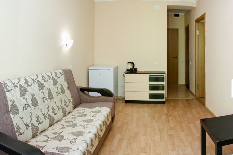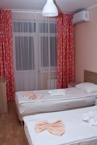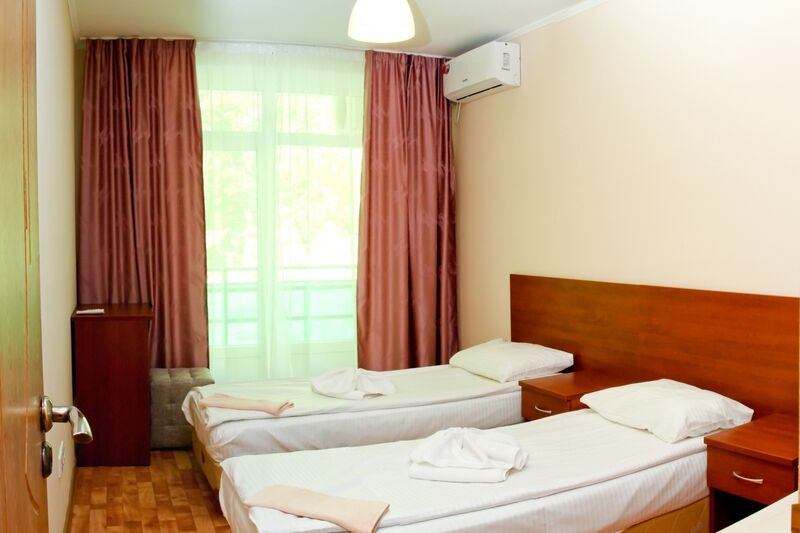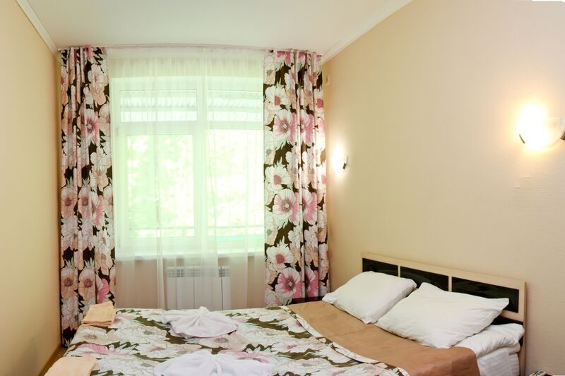 Главный шестиэтажный корпус отеля разместился на благоустроенной территории площадью 5 гектаров. На территории, окруженной лесом, много дорожек и аллей. Обширный жилой фонд, способный единовременно принять более 360 человек, предлагает гостям комфортабельные номера с удобствами. В каждом номере предусмотрен персональный санузел с ванной или душем, комнаты оснащены кондиционером, есть телевизор и безлимитный интернет.
