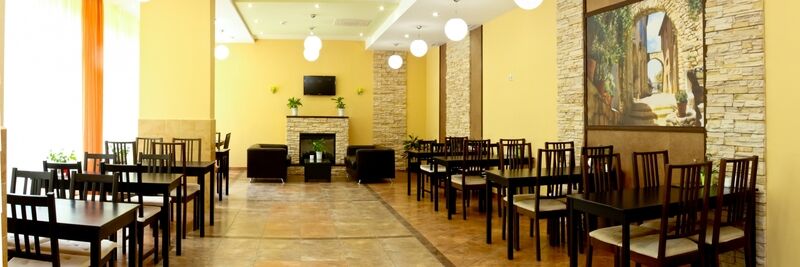В отдельном двухэтажном здании расположена столовая на 300 посадочных мест, а на первом этаже главного корпуса работает кафе. В распоряжении отдыхающих – открытый новый бассейн, оборудованные спортивные площадки, фитнес-зал, теннисный корт, массажный кабинет и библиотека. В числе стандартных прочих услуг – багажная комната, прачечная и автомобильная парковка.