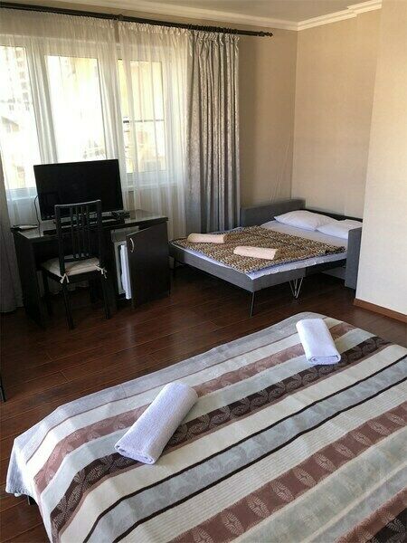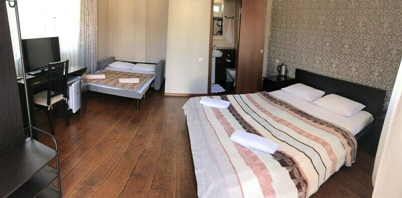 В номере: двуспальная кровать, диван, шкаф, стол, сплит-система, телевизор с кабельными и спутниковыми каналами, Wi-Fi, чайник, холодильник; санузел и душ.