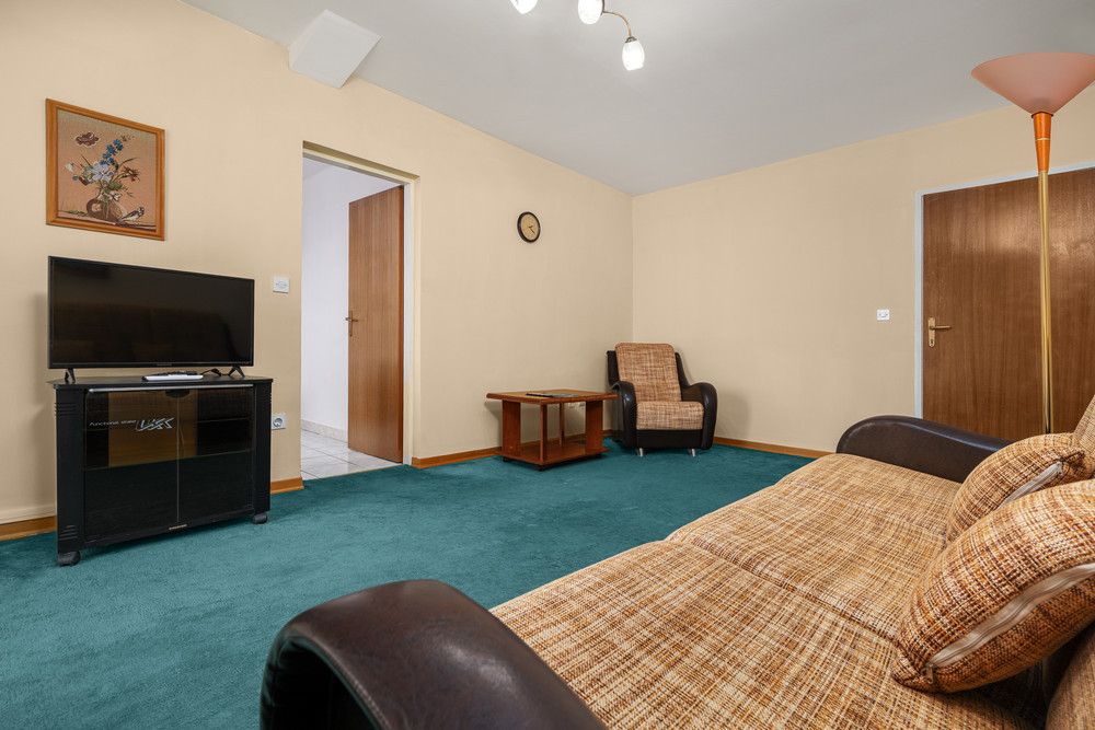В гостиной расположен диван, в спальной комнате двуспальная или 2 раздельные кровати.