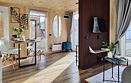 В вашем распоряжении — дом с панорамными окнами, наполненный светом и теплом, и уютная дровяная баня с отдельной комнатой для отдыха. Для того чтобы создать атмосферу безмятежности, на просторной деревянной террасе можно устроить чаепитие в шезлонгах или развести костер в специально отведенной зоне. Кроме того, здесь есть мангальная площадка для приготовления барбекю, чан для релаксации и закрытая территория с комфортной парковкой.
