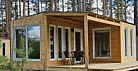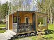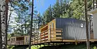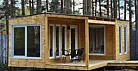 Трехмодульный домик семейный площадью 35 квадратных метров рассчитан на шесть гостей. Он прекрасно подойдёт для семьи из родителей и двух детей или небольшой компании.