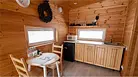 Одномодульный Г-образный средний домик в 21 квадратный метр вмещает четырех человек: семью или дружную компанию.