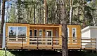 Двухмодульный домик семейный площадью 30 квадратных метров рассчитан на четырех гостей. Он прекрасно подойдёт для семьи из родителей и двух детей или небольшой компании.
