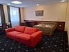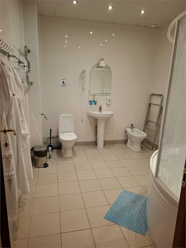 телевизор, Wi-Fi, телефон, фен, ванная комната, ванна, биде, халаты, банные полотенца, тапочки, гигиенические средства, двуспальная кровать, диван, кресла, тумбы, стулья, шкаф для одежды, журнальный столик, письменный стол, обеденный стол, багажная тумба, зеркало, чайный набор, чайник, унитаз, раковина, ковровое покрытие, стаканы, вид на стадион, сушилка для белья, мини-холодильник, вид на лес, вешалки-плечики, шапочка для душа, мыло, не раскладной диван, без питомцевВ номере