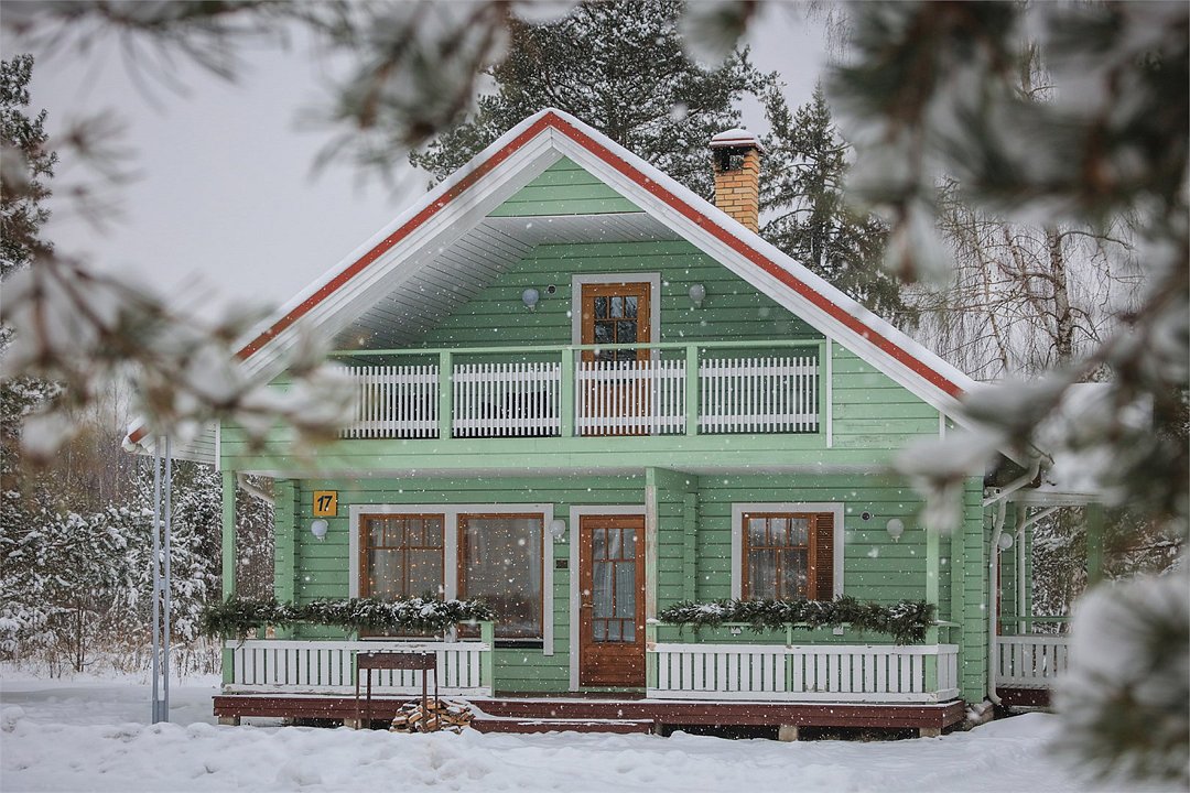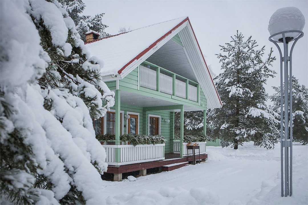 В коттедже - 6 основных мест, 2 дополнительных места. Первый этаж: гостиная с дровяным камином, спальня с двумя односпальными кроватями и гардеробной, кухня, сушильный шкаф для одежды, сауна, санузел с двумя душами; Второй этаж: две спальни с односпальными кроватями (в каждой спальне по 2 кровати), холл, санузел. Есть один коттедж с двуспальной кроватью на 2 этаже.Услуги и удобства