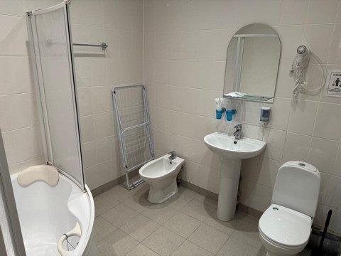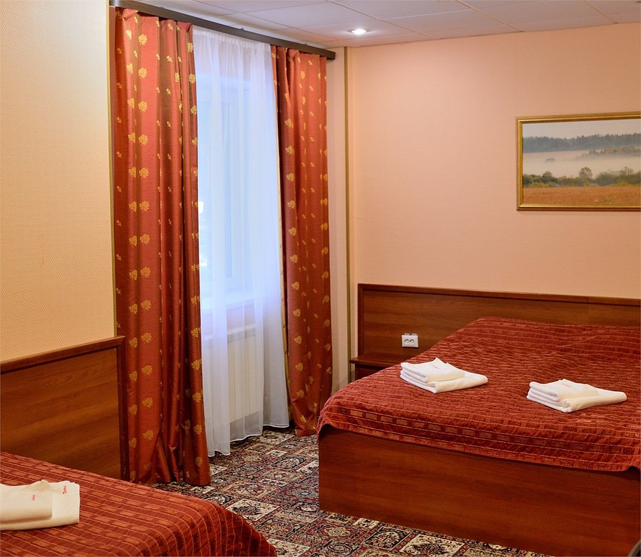 телевизор, Wi-Fi, телефон, фен, ванна или душевая кабина, санузел, банные полотенца, гигиенические средства, двуспальная кровать, полутораспальная кровать, тумбы, стулья, шкаф для одежды, письменный стол, багажная тумба, зеркало, чайный набор, чайник, унитаз, раковина, ковровое покрытие, три полутораспальные кровати, стаканы, стол, вид на парк, сушилка для белья, мини-холодильник, вешалки-плечики, мыло, можно с питомцамиВ номере