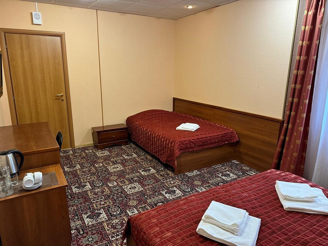 телевизор, Wi-Fi, телефон, фен, санузел, банные полотенца, гигиенические средства, две полутораспальные кровати, тумбы, шкаф для одежды, письменный стол, багажная тумба, зеркало, чайный набор, чайник, унитаз, раковина, ковровое покрытие, душ, стаканы, вид на стадион, стул, сушилка для белья, мини-холодильник, вешалки-плечики, мыло, можно с питомцамиВ номере