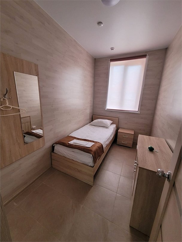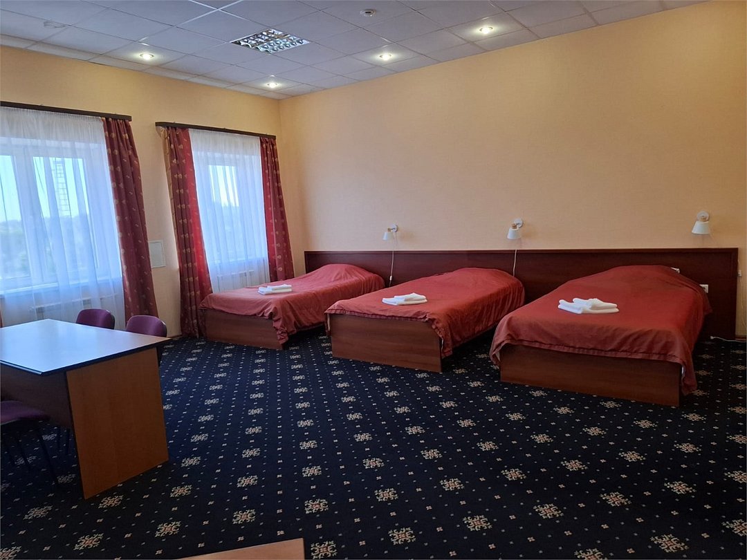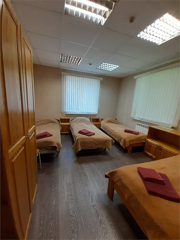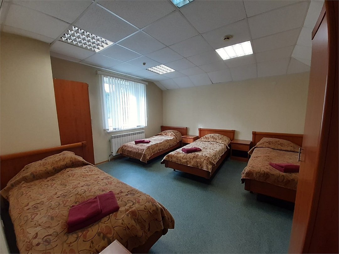 Двуспальная кровать, кровать "евростандарт" , либо 3 односпальные кровати, плазменный телевизор, стол, стул, шифоньер, электрочайник, чайная посуда, кувшин и стаканы для воды, мини-холодильник, ковролиновое покрытие пола.Услуги и удобства