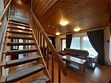 6 основных мест, 2 дополнительных места. Первый этаж: гостиная с дровяным камином, спальня с двумя односпальными кроватями, кухня - столовая, сушильный шкаф, сауна, санузел с душем; Второй этаж: две спальни с односпальными кроватями (по 2 кровати в каждой спальне), санузел.Услуги и удобства