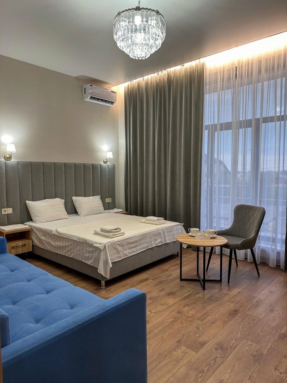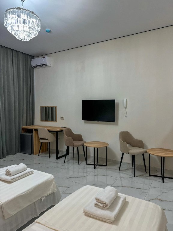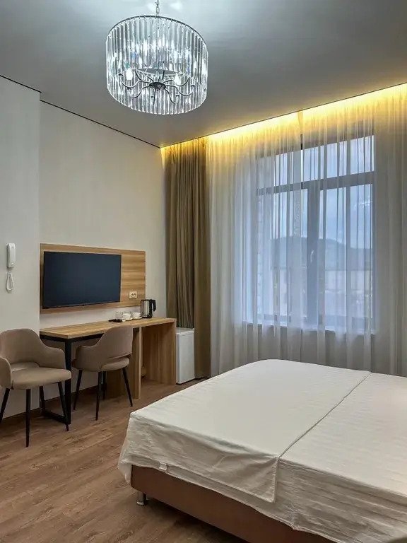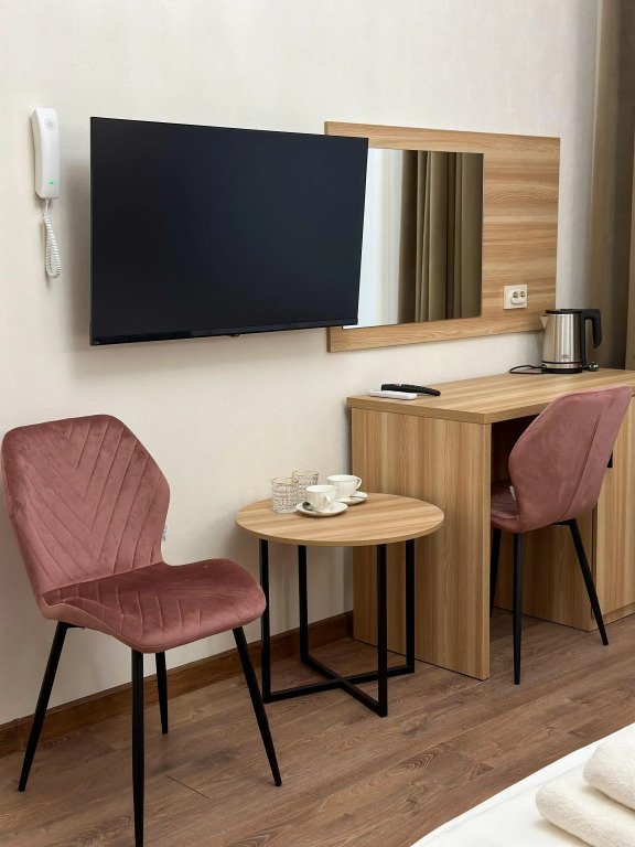 В номере вы найдёте телевизор. Оснащение зависит от выбранной категории номера.