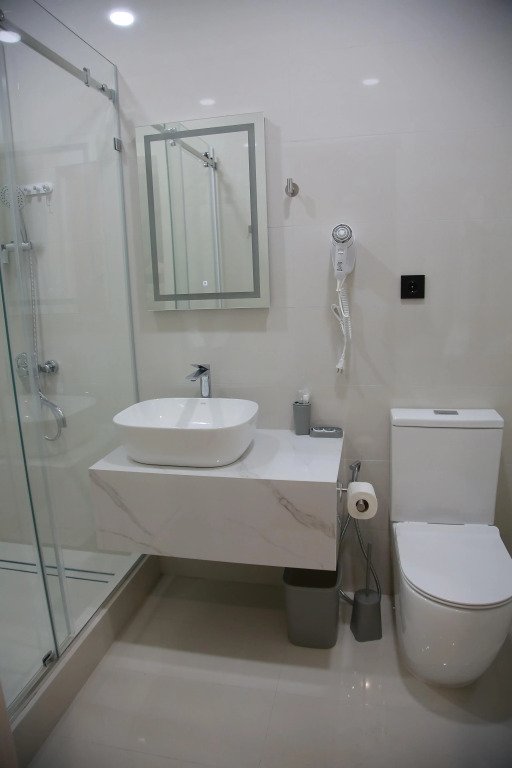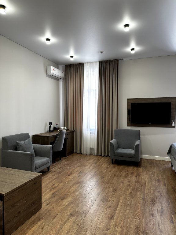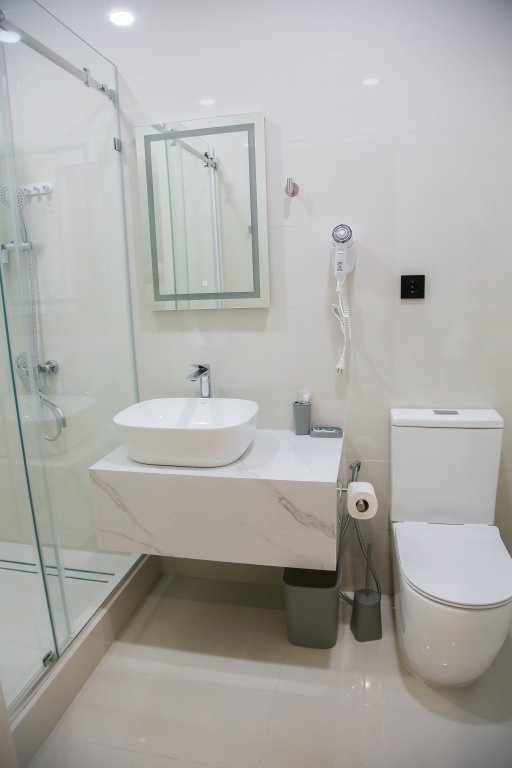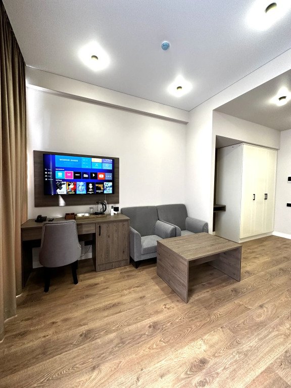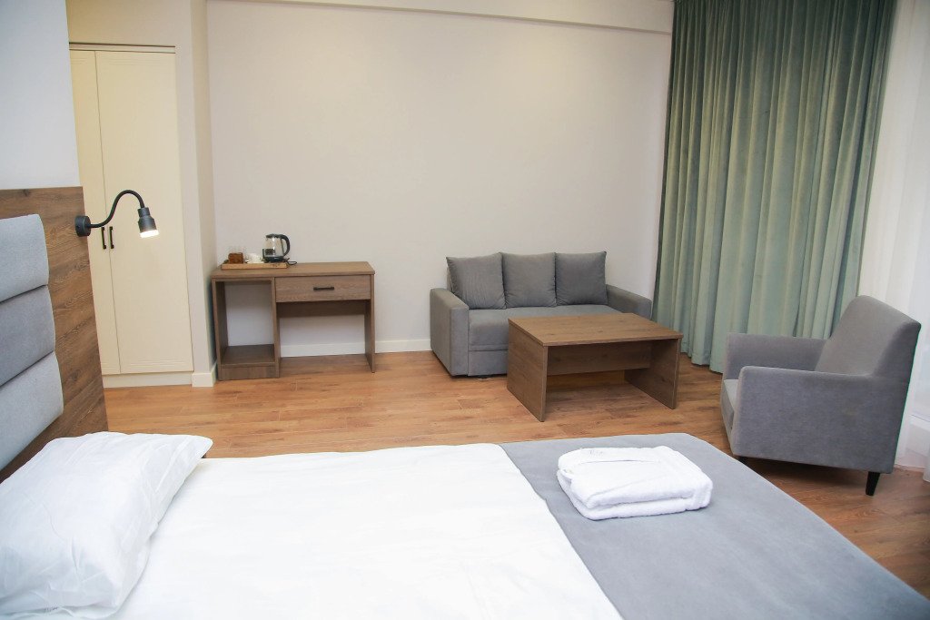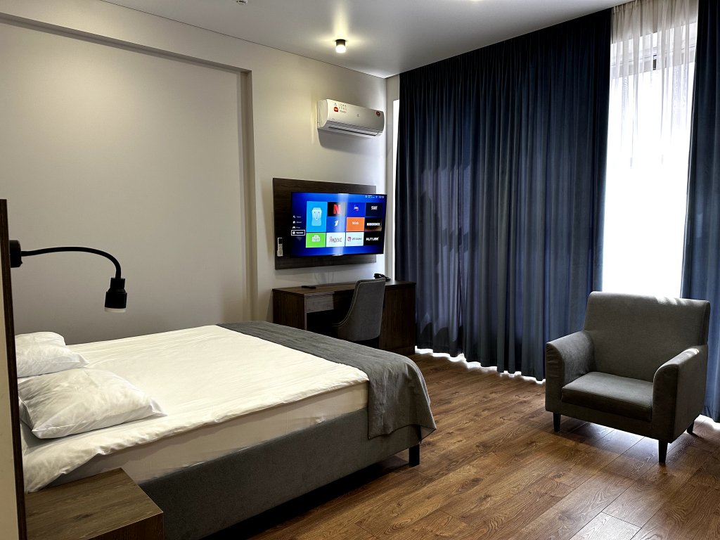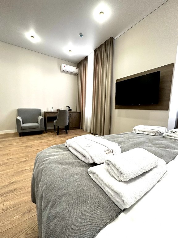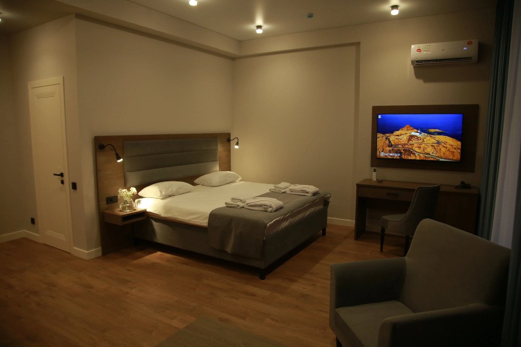 В каждом номере есть кондиционер, телевизор, сейф, холодильник и остальные необходимые удобства. Оснащение зависит от выбранной категории номера.