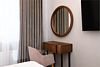 Wi-Fi, кондиционер, светильник, фен, электронные замки, душевая кабина, халаты, банные полотенца, тапочки, гигиенические средства, косметические средства, двуспальная кровать, шкаф для одежды, журнальный столик, зеркало, две комнаты, чайный набор, сейф, раковина, гостиная зона, отопление, вид на город, стаканы, тумба, туалет, мини-холодильник, телевизор со Smart TV, гигиенический душ, чайная станция, уборка номера, набор для приготовления чая и кофе, бутилированная вода, мыло, затемняющая штора, не раскладной диван, без питомцевВ гостиничном номере