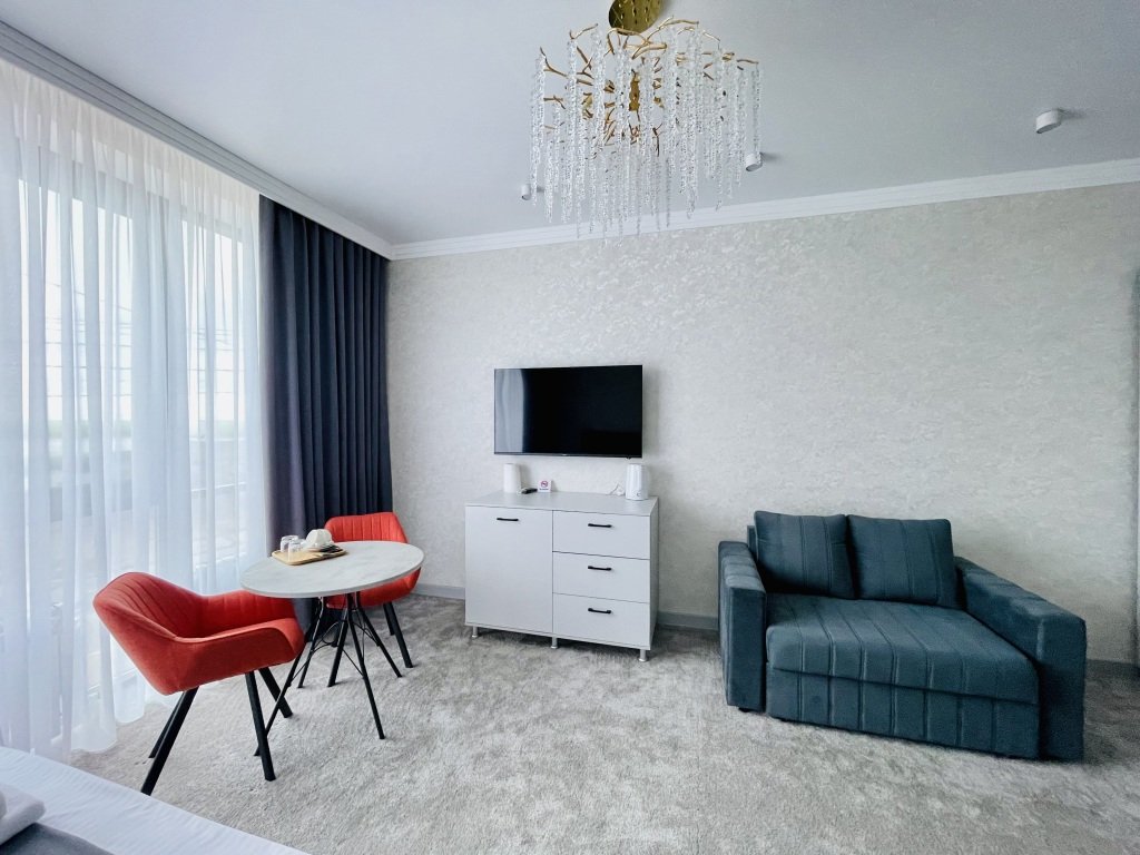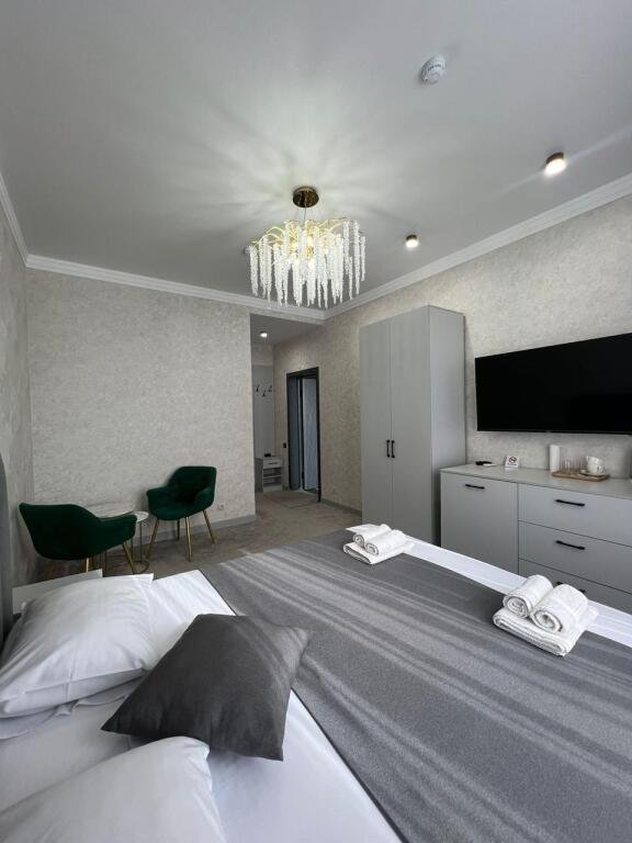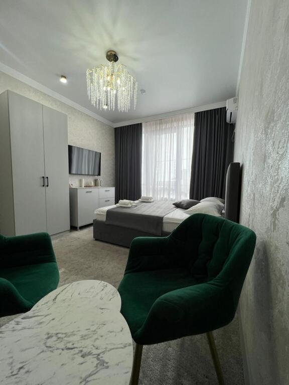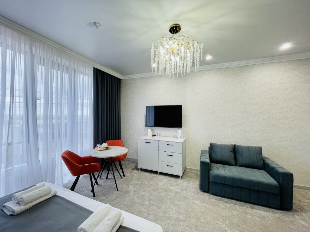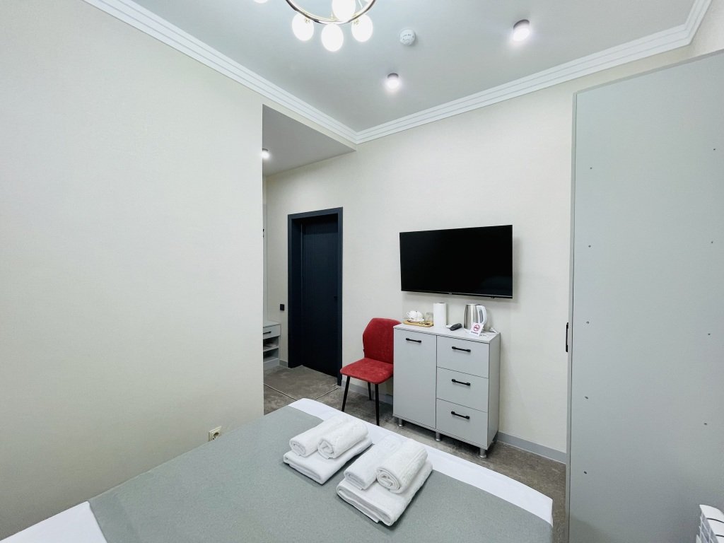 Номер уютно обставлен и оснащён необходимым, чтобы отдохнуть после долгого и насыщенного дня. Имеются телевизор. Оснащение зависит от выбранной категории номера.