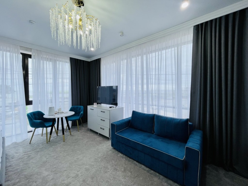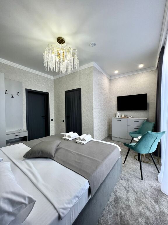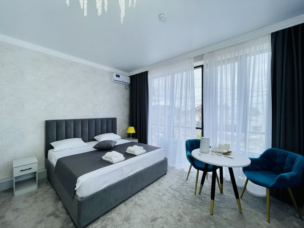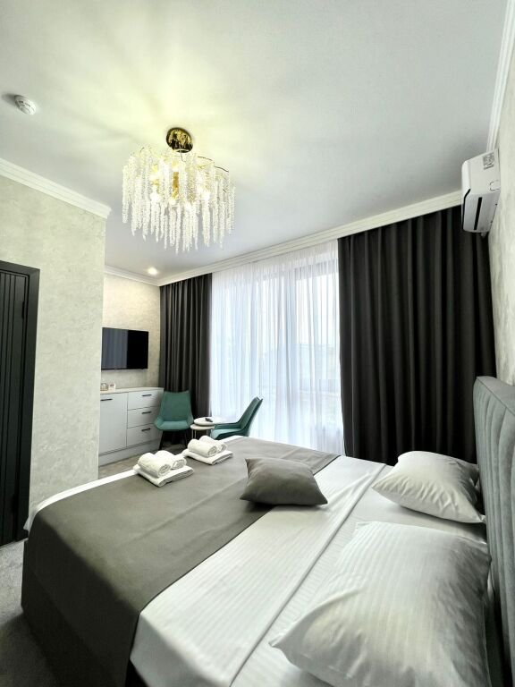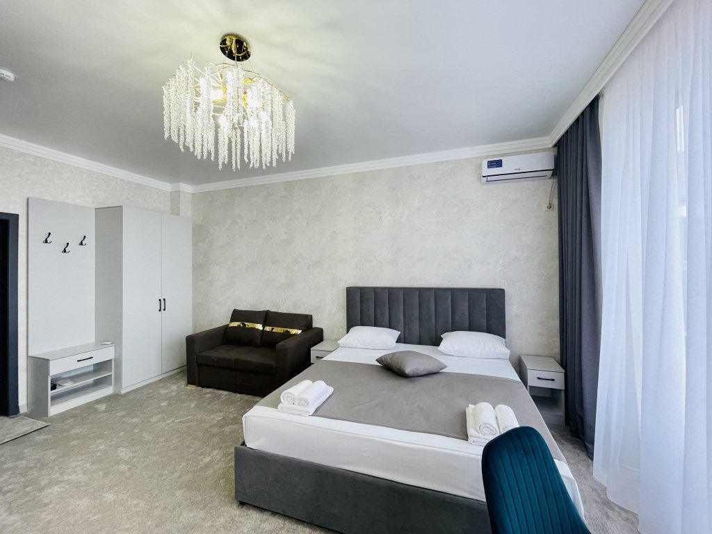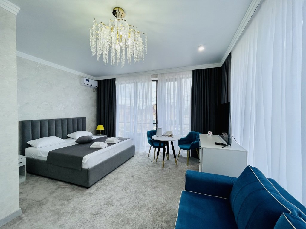Номер уютно обставлен и оснащён необходимым, чтобы отдохнуть после долгого и насыщенного дня. Имеются телевизор. Оснащение зависит от выбранной категории номера.