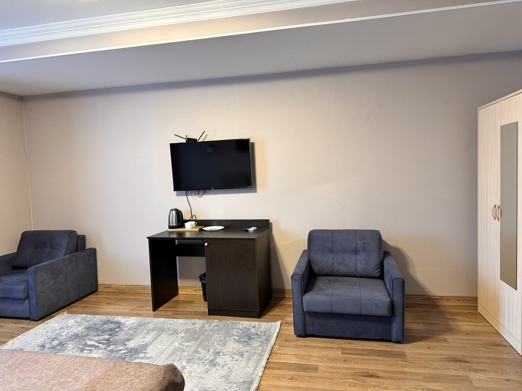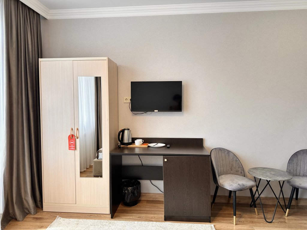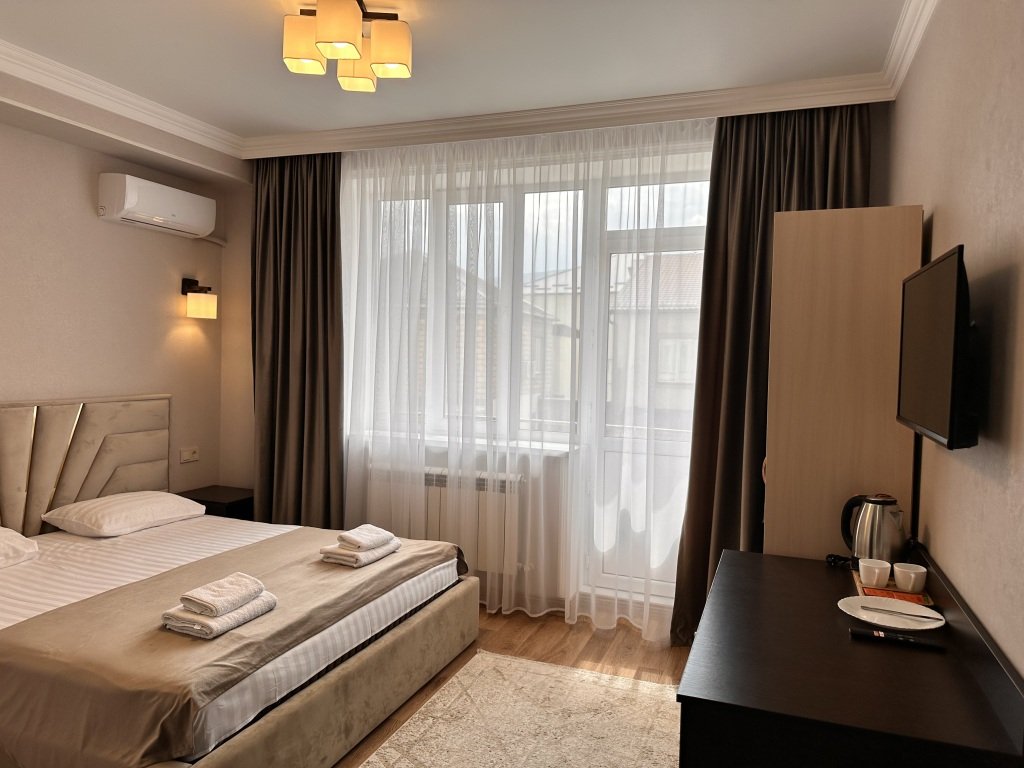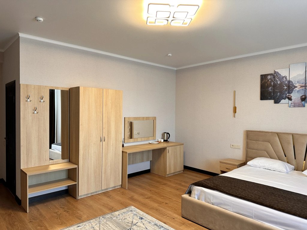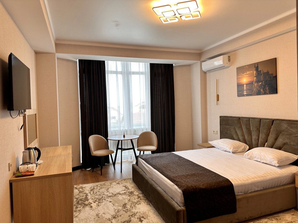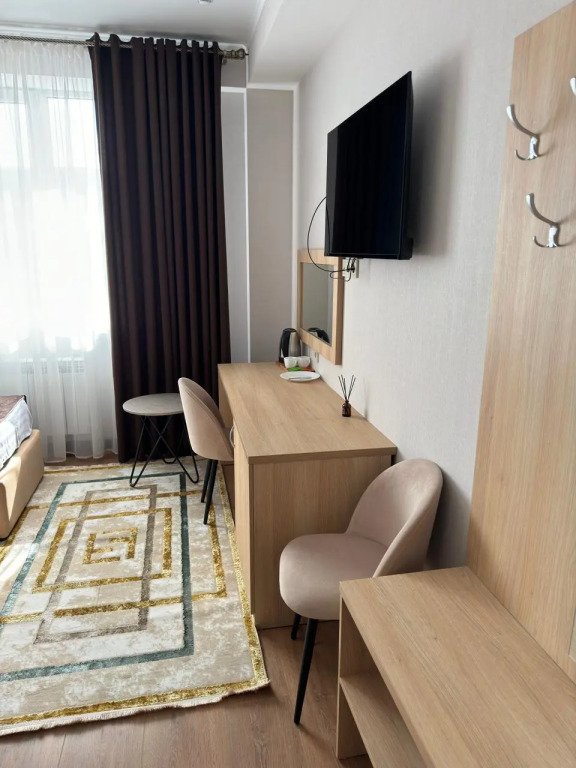 Номер уютно обставлен и оснащён необходимым, чтобы отдохнуть после долгого и насыщенного дня. Имеются телевизор. Оснащение зависит от выбранной категории номера.