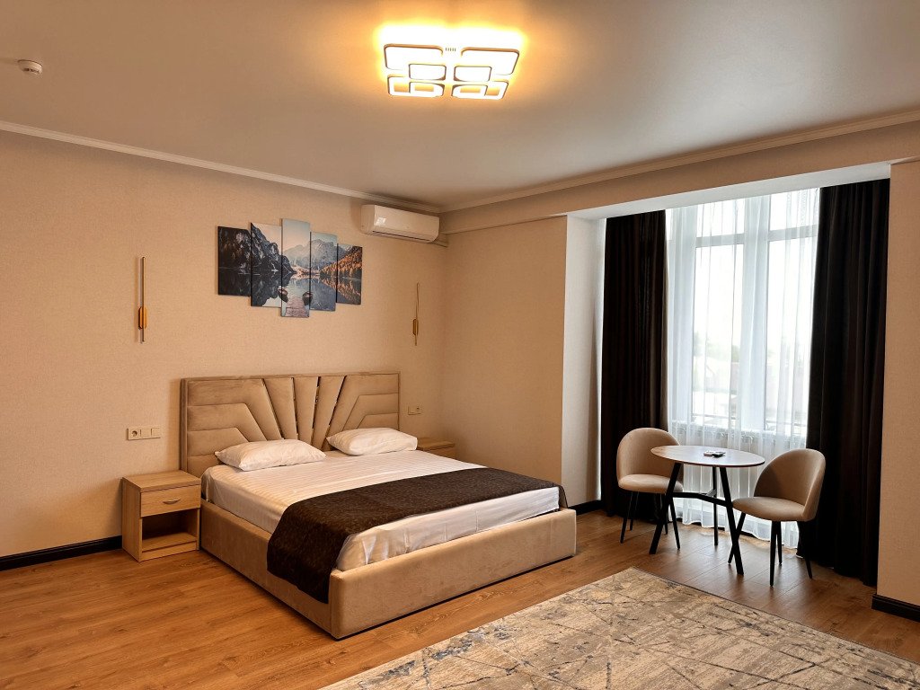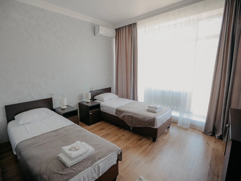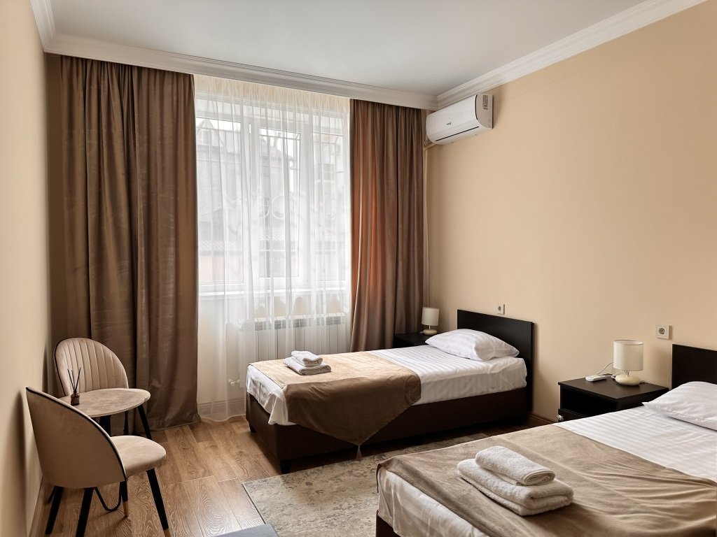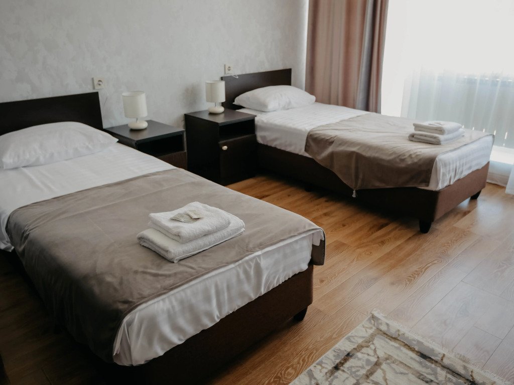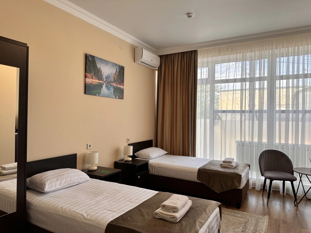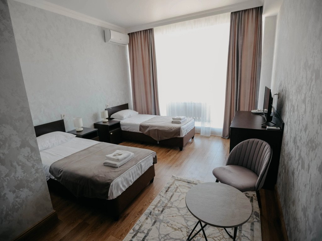 Номер уютно обставлен и оснащён необходимым, чтобы отдохнуть после долгого и насыщенного дня. Имеются телевизор. Оснащение зависит от выбранной категории номера.