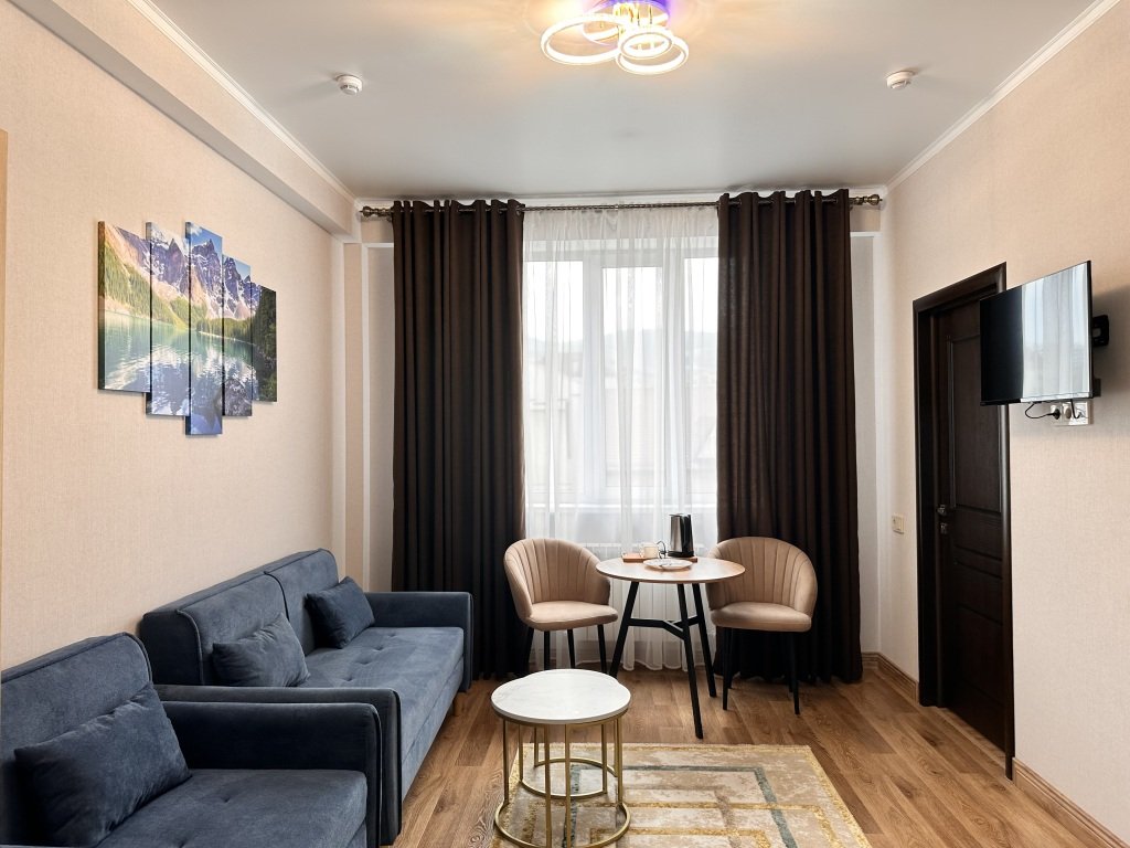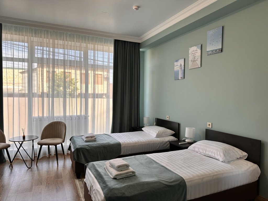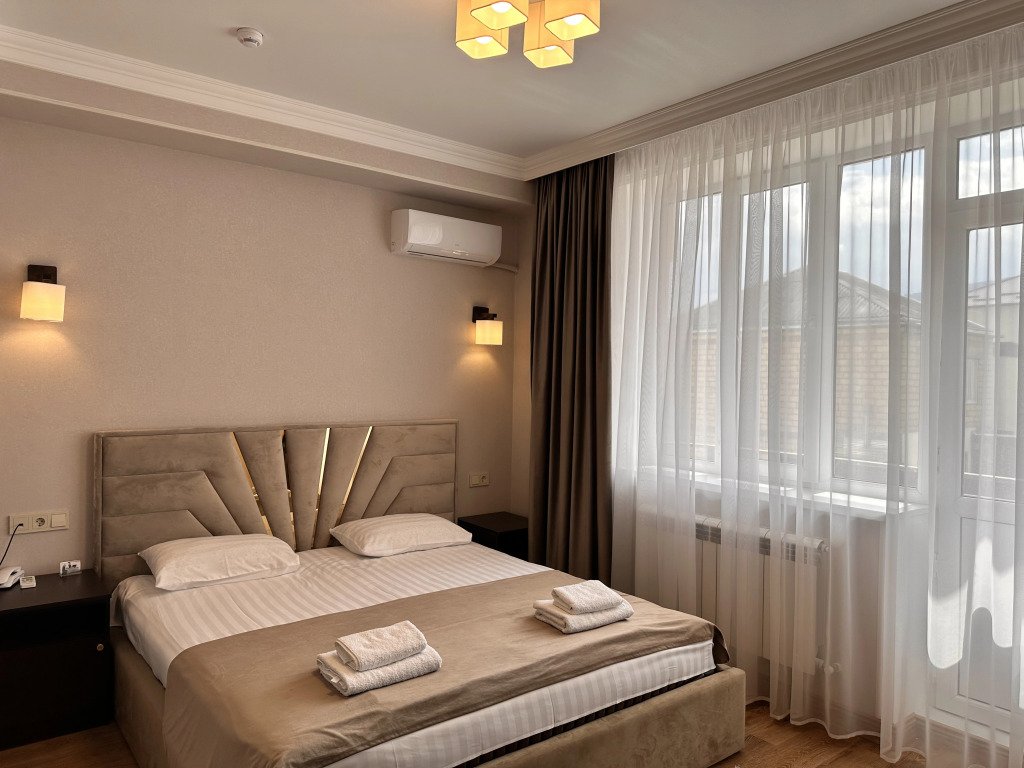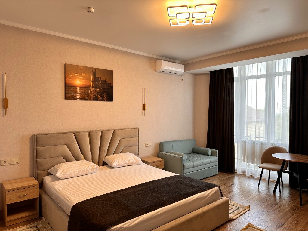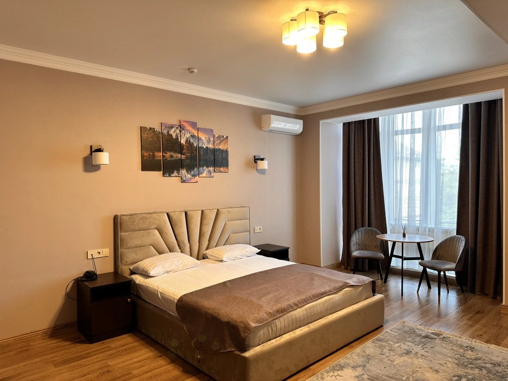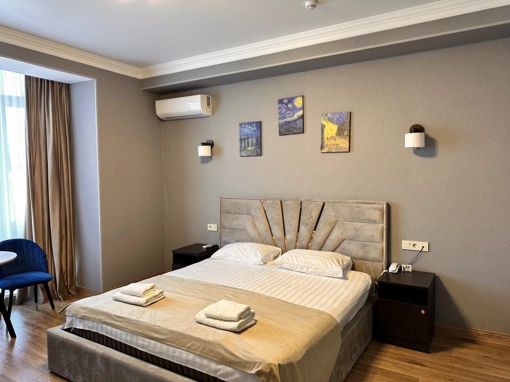 Номер уютно обставлен и оснащён необходимым, чтобы отдохнуть после долгого и насыщенного дня. Имеются телевизор. Оснащение зависит от выбранной категории номера.