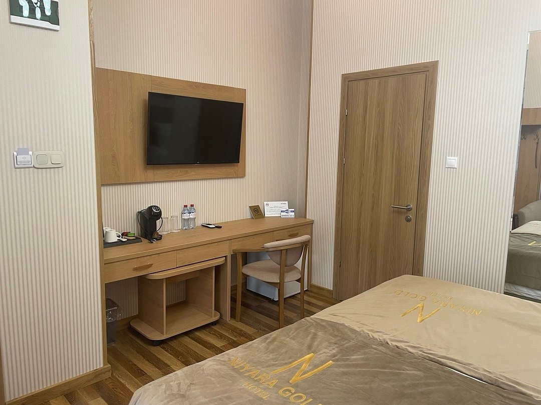 телевизор, Wi-Fi, интернет, телефон, IP-телефон, кондиционер, фен, кофемашина, утюг, ванная комната, душевая кабина, санузел, банные принадлежности, халаты, банные полотенца, пляжные полотенца, тапочки, двуспальная кровать, гладильная доска, кресла, стулья, шкаф для одежды, вешалки, зеркало, мини-бар, обслуживание номеров, сейф, чайник, унитаз, раковина, питьевая вода, ковровое покрытие, душ, вид на город, вид во двор, стаканы, столовые приборы, туалетные средства, внутренний телефон, телевизор с плоским экраном, мини-холодильник, телевизор со Smart TV, номер для некурящих, уборка номера, услуги прачечной (платно), бутилированная водаВ гостиничном номере