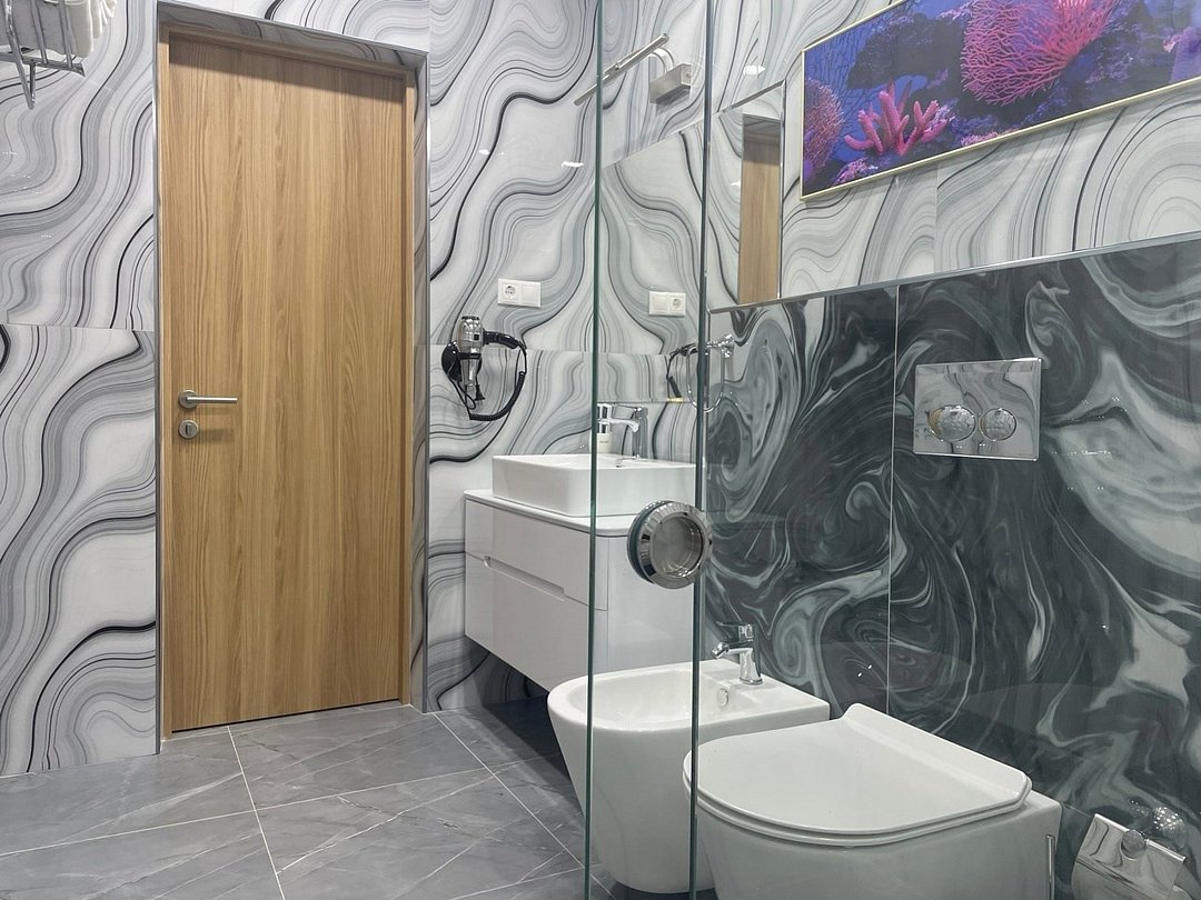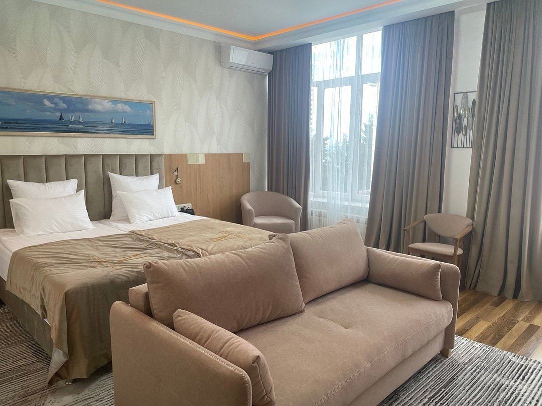 телевизор, Wi-Fi, интернет, телефон, IP-телефон, холодильник, кондиционер, фен, плита для приготовления пищи, кофемашина, утюг, ванная комната, душевая кабина, санузел, халаты, банные полотенца, пляжные полотенца, тапочки, балкон, балкон с красивым видом, двуспальная кровать, гладильная доска, диван, шкаф для одежды, вешалки, зеркало, ковер, кухня, мини-бар, сейф, чайник, раковина, питьевая вода, душ, вид на море, кресло, паркет, стаканы, столовые приборы, стул, туалетные средства, туалет, внутренний телефон, телевизор с плоским экраном, мини-холодильник, телевизор со Smart TV, номер для некурящих, джакузи, уборка номера, услуги прачечной (платно), бутилированная водаВ гостиничном номере