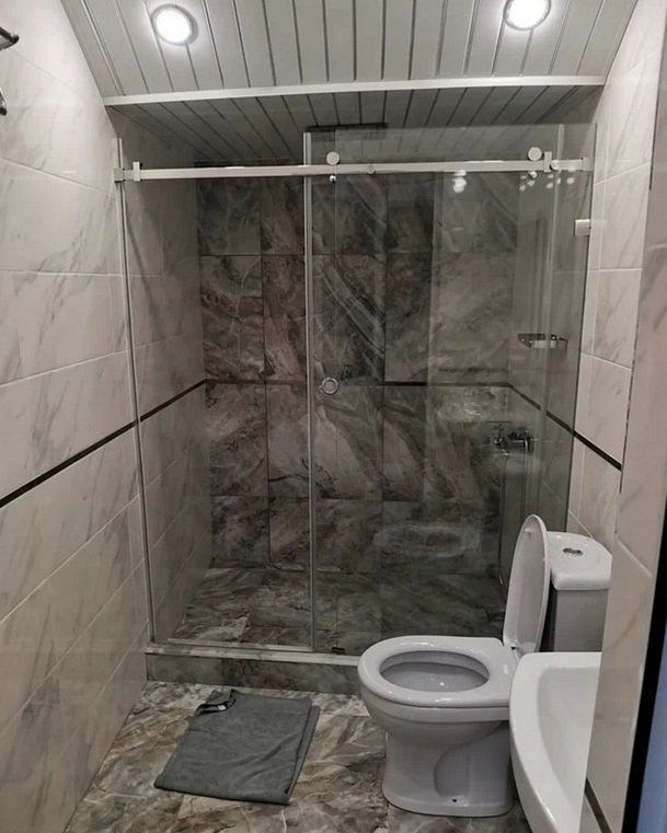Индивидуальная ванная комната: душ, раковина, туалет.