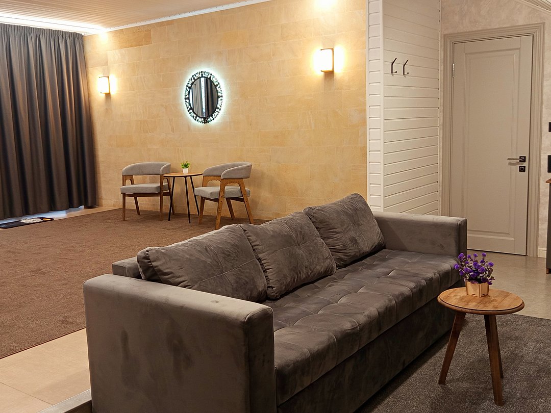 Номер полулюкс комфорт сочетает в себе теплоту, минимализм и удобство. Интерьер выполнен в нейтральных оттенках с акцентом на мягкий свет и текстуры. Всё здесь направлено на то, чтобы создать ощущение уюта и уединения. Идеально подходит как для пар, так и для гостей, которые ценят эстетику и комфорт.