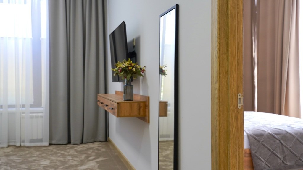 В номере гостей ждут телевизор и халат. Перечисленные услуги есть не во всех номерах.