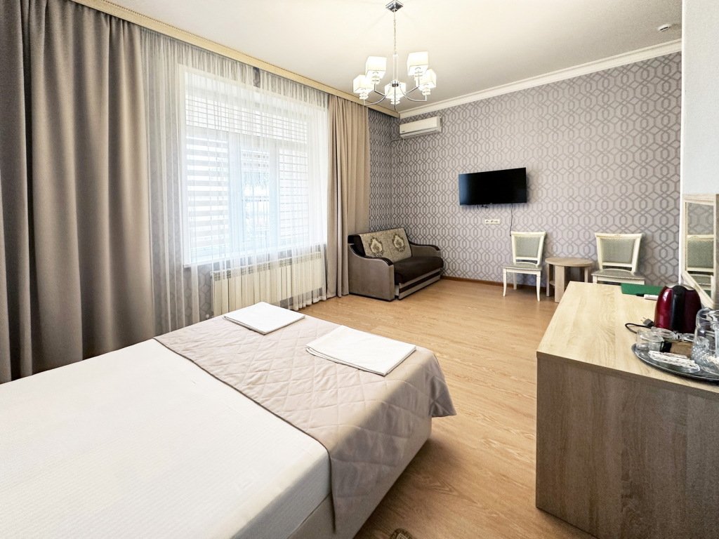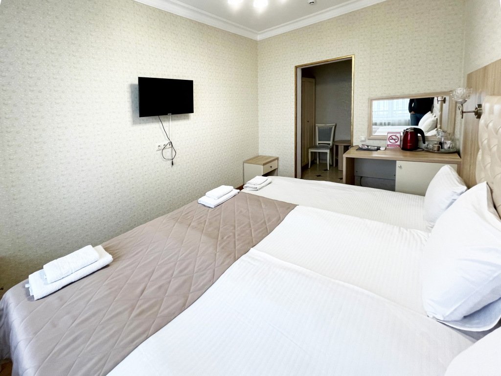 В номере гостей ждут телевизор. Оснащение зависит от выбранной категории номера.