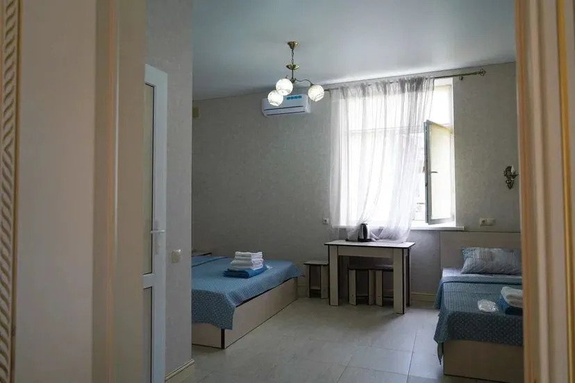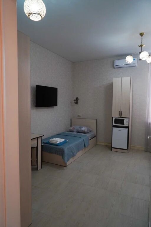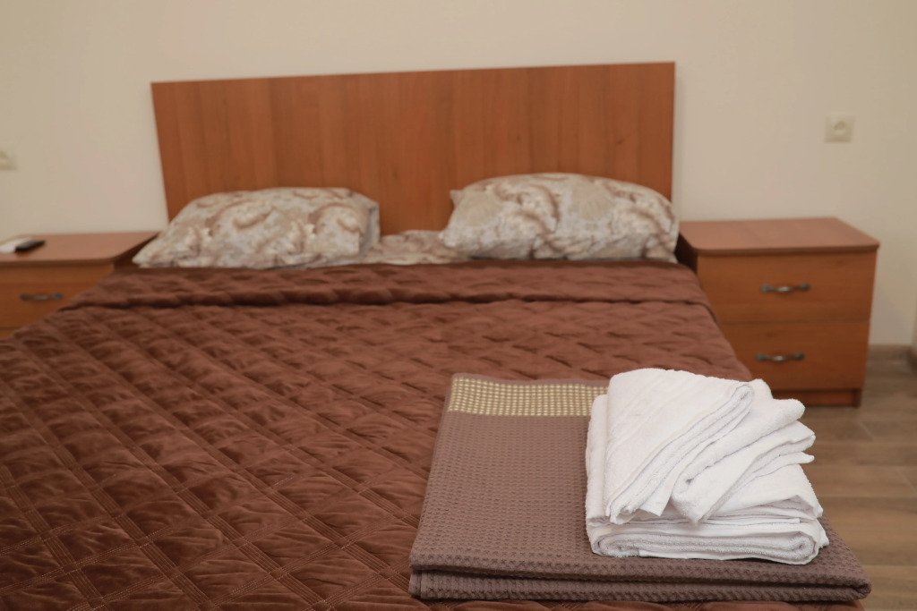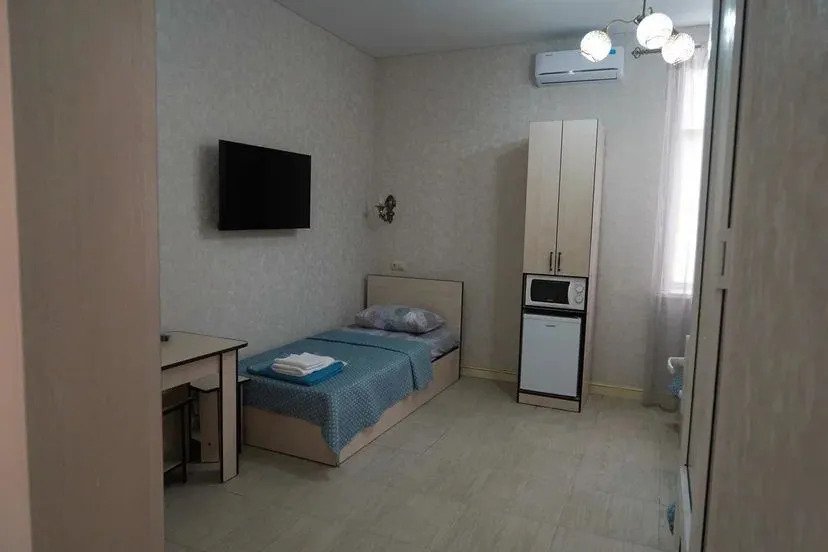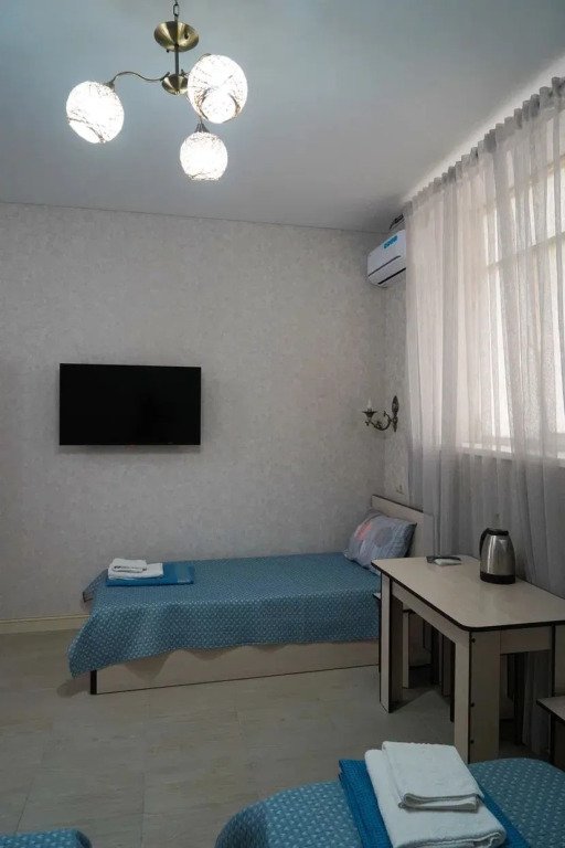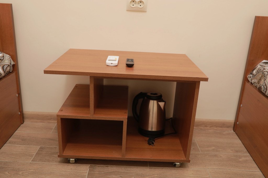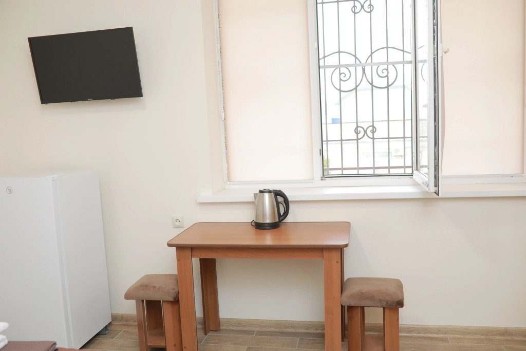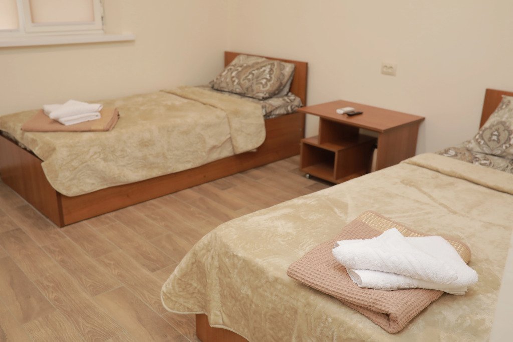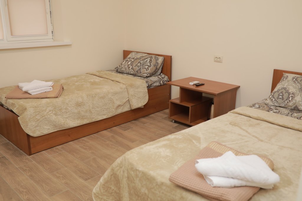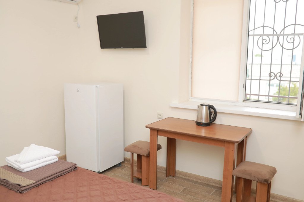 В каждом номере есть: санузел со средствами личной гигиены, столик, холодильник, кондиционер, телевизор, электрочайник, тумбы, прихожая мебель, банные принадлежности.