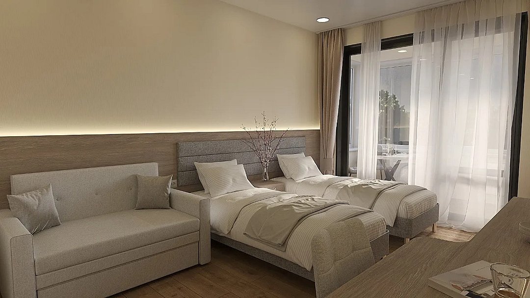 Superior Double Room — улучшенная категория с увеличенной площадью и более просторной планировкой, подходящая для комфортного размещения до трёх гостей. Площадь номера без учёта балкона составляет 23 м². В комнате — удобная двуспальная кровать с качественным постельным бельём и раскладной диван, который может использоваться как дополнительное спальное место для взрослого или ребёнка. За счёт увеличенной площади номер ощущается более свободным и подходит для длительного проживания. Большие панорамные окна наполняют пространство естественным светом, а выход на балкон позволяет приятно провести время на свежем воздухе. В жаркие дни комфортную температуру поддерживает кондиционер. Для отдыха и удобства гостей предусмотрены телевизор с функцией Smart TV, рабочая зона и Wi-Fi. В номере также есть чайная станция, бутилированная вода и мини-бар. Ванная комната оборудована душевой кабиной, гигиеническим душем и феном. Гостям предоставляются полотенца, тапочки и набор туалетных принадлежностей.Услуги и удобства