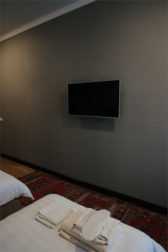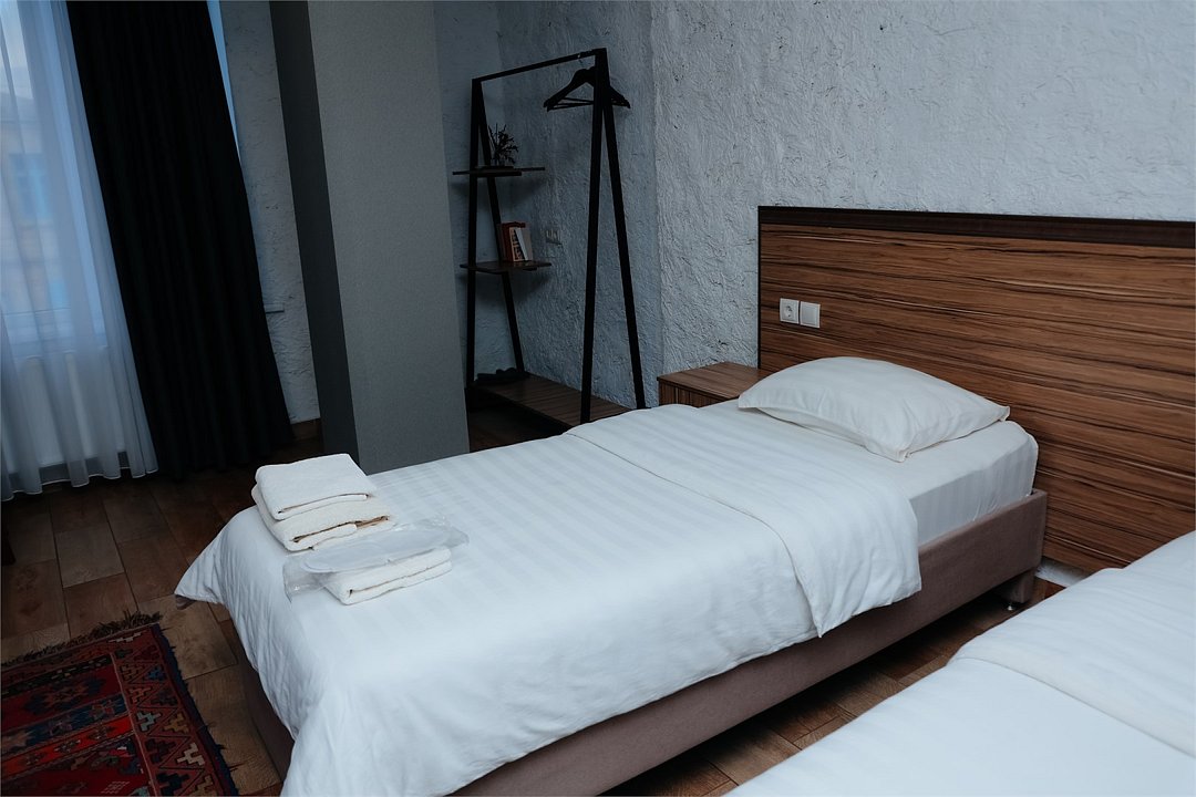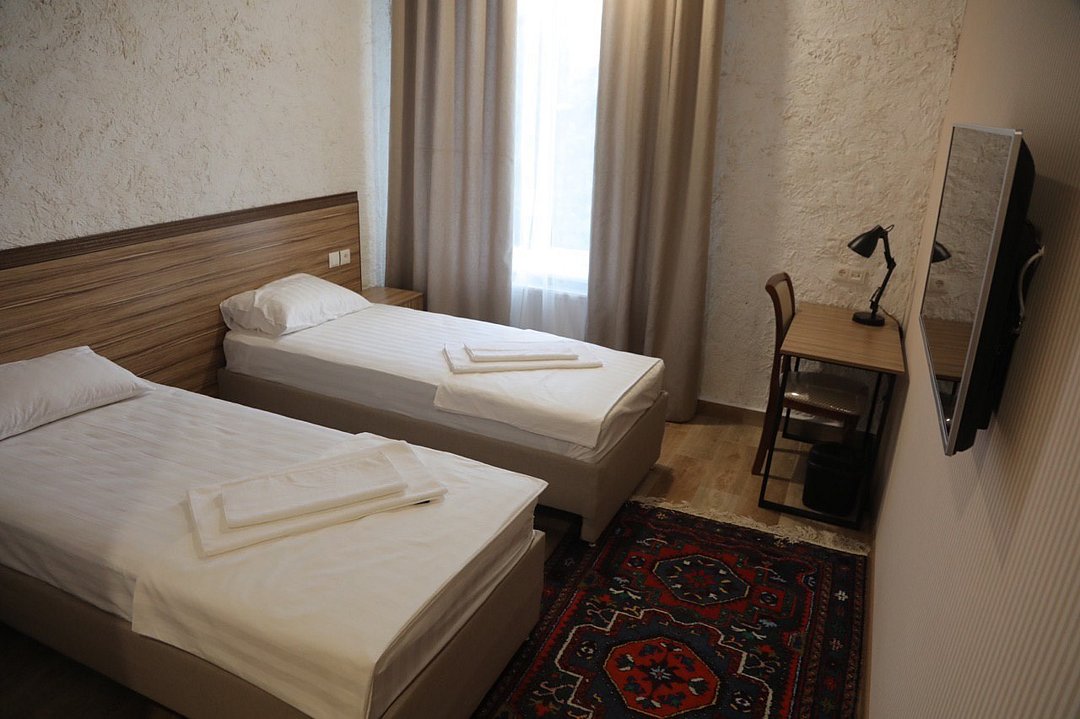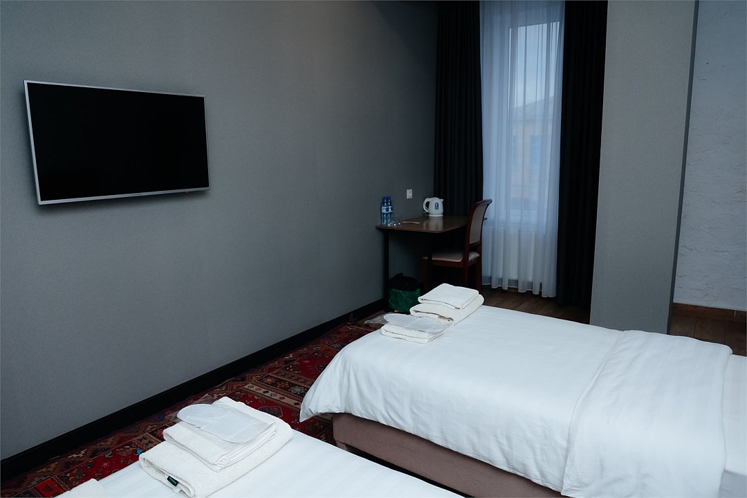 телевизор, кабельное телевидение, Wi-Fi, кондиционер, светильник, фен, санузел, халаты, банные полотенца, тапочки, гигиенические средства, терраса, две односпальные кровати, вешалки, зеркало, ковер, чайник, отопление, вид на город, стаканы, стул, стол, тумба, туалетные средства, номер для некурящих, онлайн-регистрация до заезда, набор для приготовления чая и кофе, вешалки-плечики, бутилированная вода, затемняющая штора, онлайн-регистрация, без питомцевВ гостиничном номере