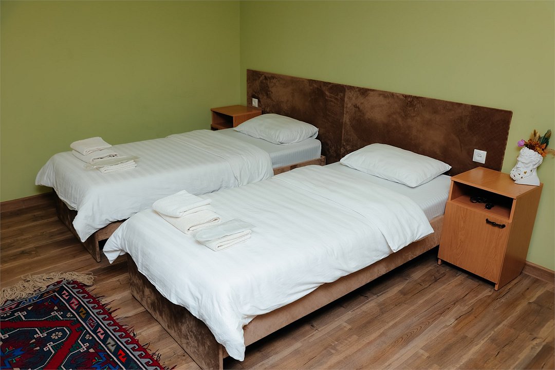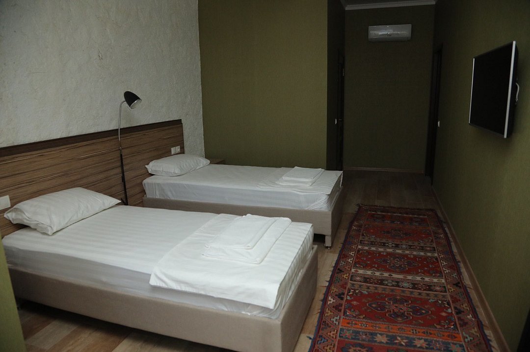 телевизор, кабельное телевидение, Wi-Fi, кондиционер, светильник, фен, санузел, халаты, банные полотенца, тапочки, гигиенические средства, терраса, две односпальные кровати, вешалки, зеркало, ковер, чайник, отопление, вид на город, стаканы, стул, стол, тумба, туалетные средства, москитная сетка, номер для некурящих, онлайн-регистрация до заезда, набор для приготовления чая и кофе, вешалки-плечики, бутилированная вода, затемняющая штора, онлайн-регистрация, без питомцевВ гостиничном номере