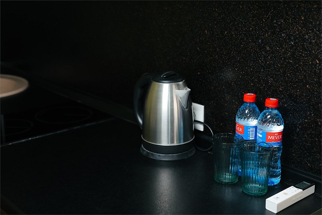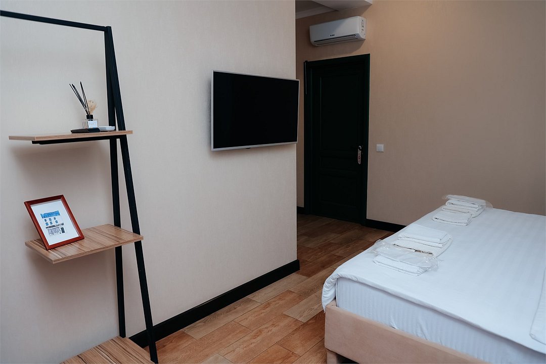 телевизор, кабельное телевидение, Wi-Fi, кондиционер, фен, плита для приготовления пищи, обогреватель, санузел, банные принадлежности, банные полотенца, тапочки, две односпальные кровати, тумбы, стулья, шкаф для одежды, вешалки, обеденный стол, зеркало, ковер, набор посуды, чайник, отдельный вход в номер, душ, вид на город, ламинат, стаканы, столовые приборы, туалетные средства, мини-кухня, номер для некурящих, кресло-кровать, бутилированная вода, мыло, без питомцевВ апартаментах