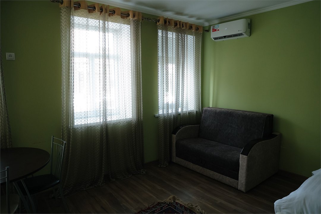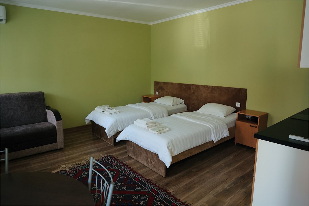 Номер апартамент расположен не в основном здании отеля. Номер рассчитан на 3 гостя. Номер оснащен мини кухней. Отельный вход. Две односпальные кровати, 1 мини диван (1,5).Услуги и удобства