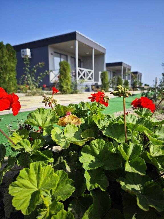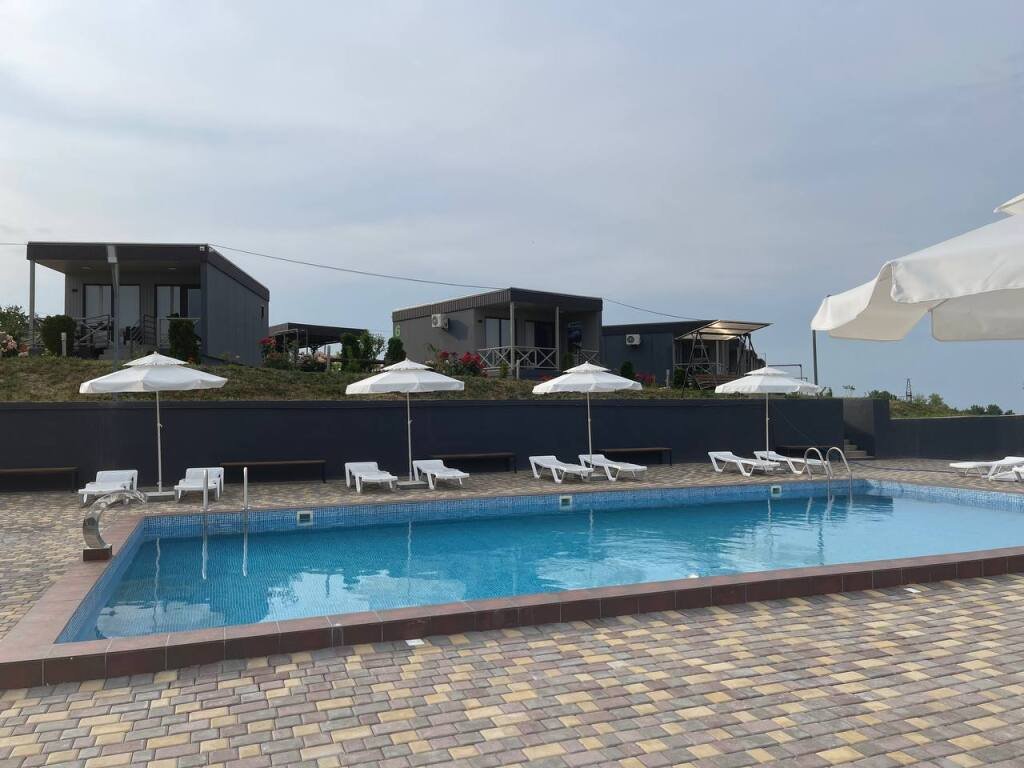 На базе отдыха расположены 10 домиков с полным оснащением: кровати-трансформеры, индивидуальные веранды, подогреваемый бассейн с системой очистки, детские и спортивные площадки, асфальтированные дорожки для прогулок и бега, футбольное и волейбольное поля.